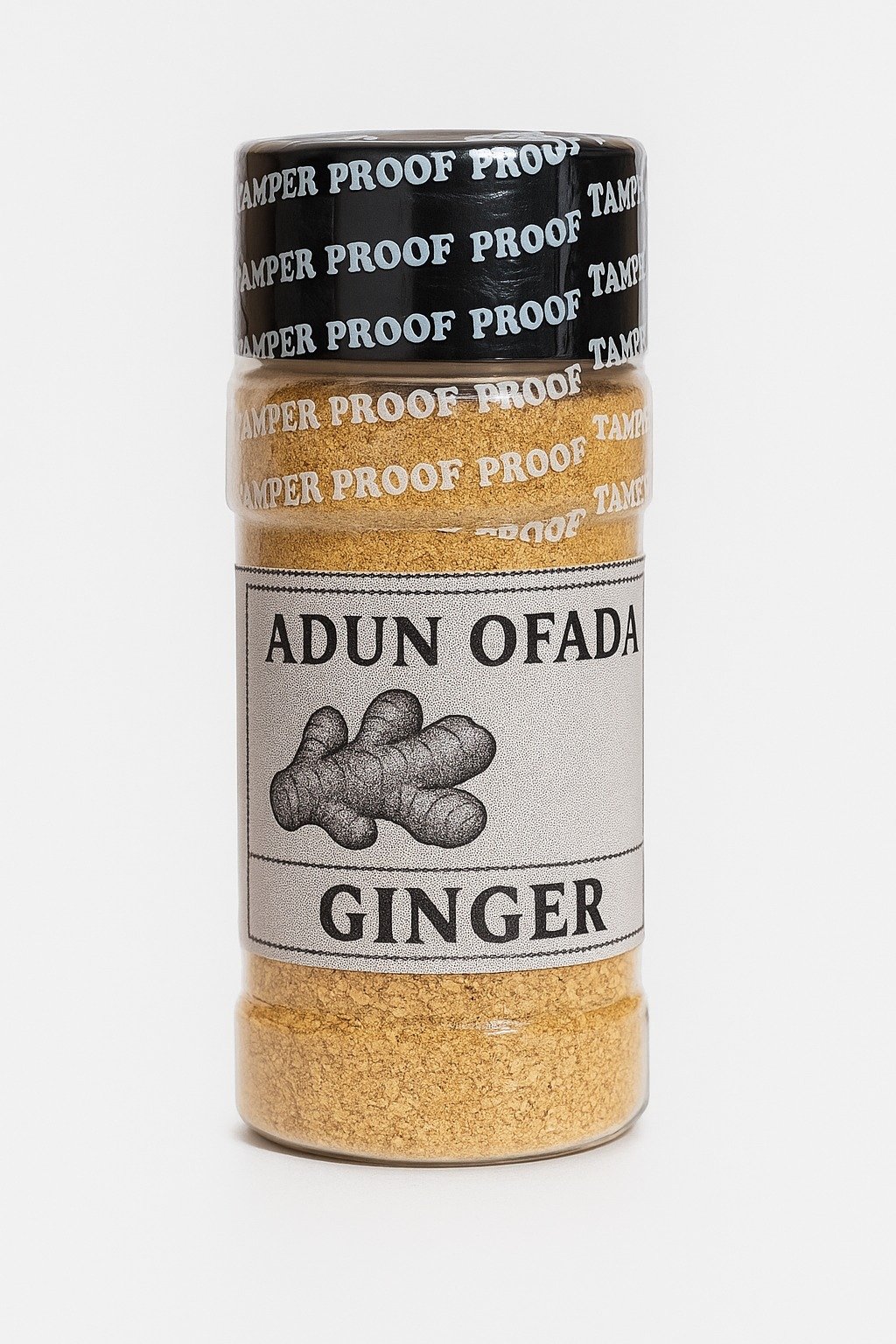 Adun Ofada Ginger – authentic Nigerian ginger seasoning, perfectly blended to add bold, zesty flavor to meats, stews, and sauces.
