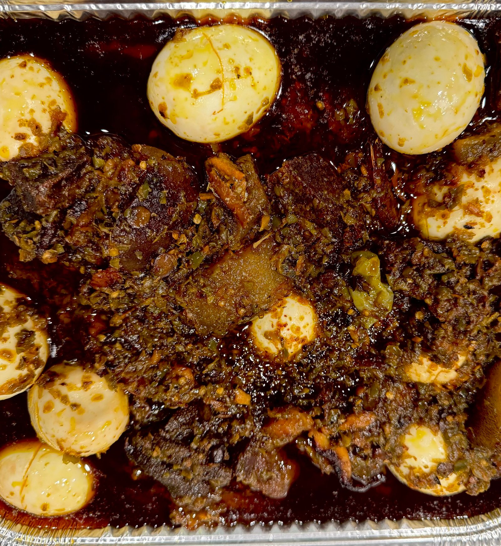Our Small Pan  Ayamase Stew(Ofada) brings the bold and authentic taste of Nigeria’s famous designer stew to your table. Cooked with fresh green peppers, onions, and a carefully balanced mix of spices, this sauce delivers rich flavor and a unique aroma that makes Ayamase a favorite among food lovers. Sized for families or intimate gatherings, this small pan is ideal for sharing and comes with your choice of protein for a wholesome, satisfying meal. Perfect for anyone craving traditional Nigerian cuisine in the US or abroad.